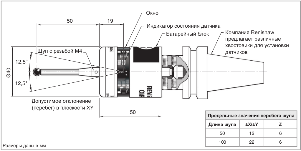 • Работает в составе системы с оптическими приемниками Renishaw.