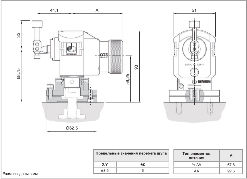 Дисковый щуп Ø12,7 мм или квадратный щуп 19,05 × 19,05 мм