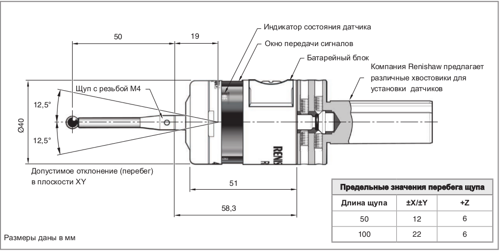 Небольшой по размеру высокочастотный датчик RLP40, устанавливаемый в револьверную головку, предназначен для настройки и измерения размеров деталей на токарных обрабатывающих центрах.